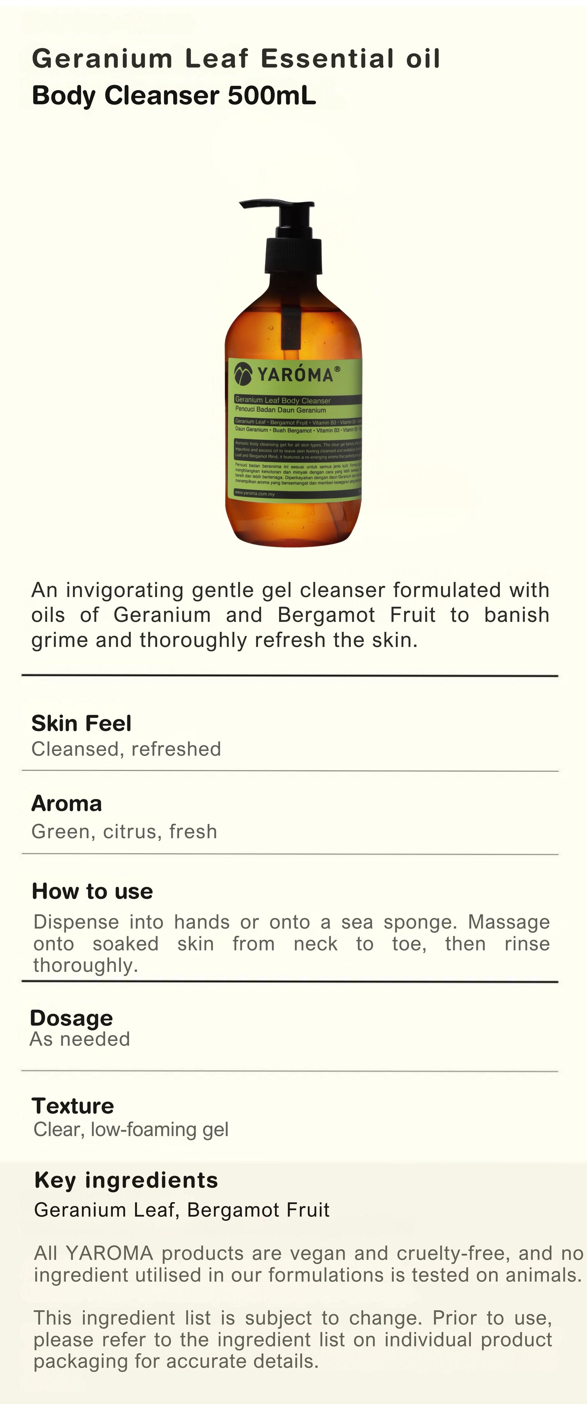 YAROMA Geranium Leaf & Bergamot Fruit Essential Oil Body Cleanser